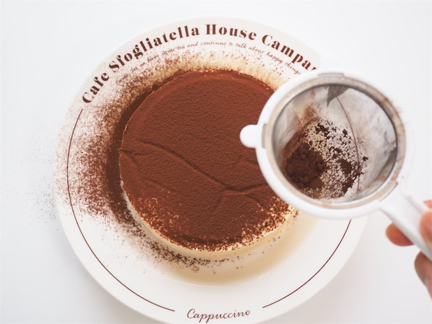8. 仕上げに、茶こしなどでココアパウダーを表面にふりかければ完成!
