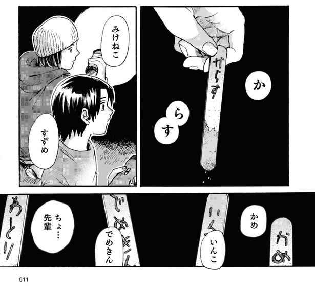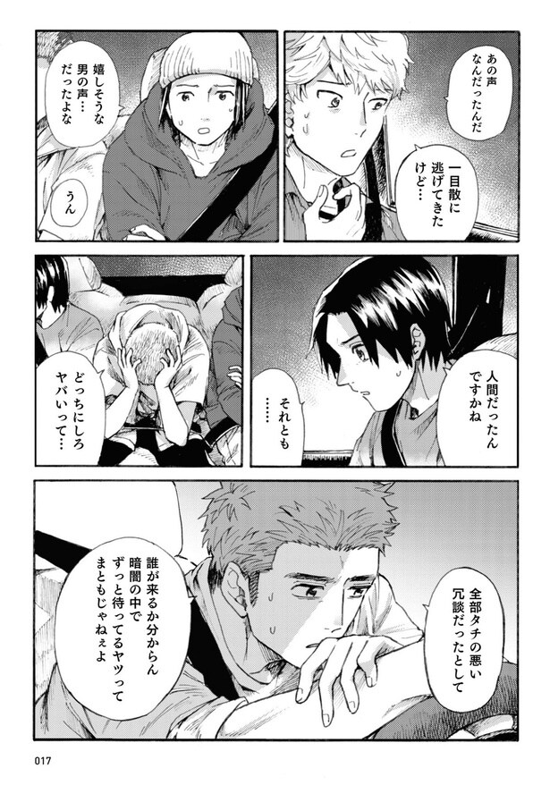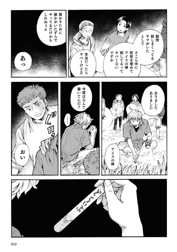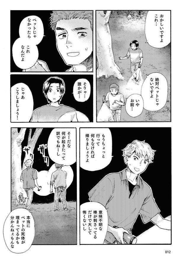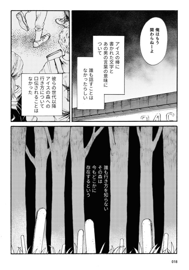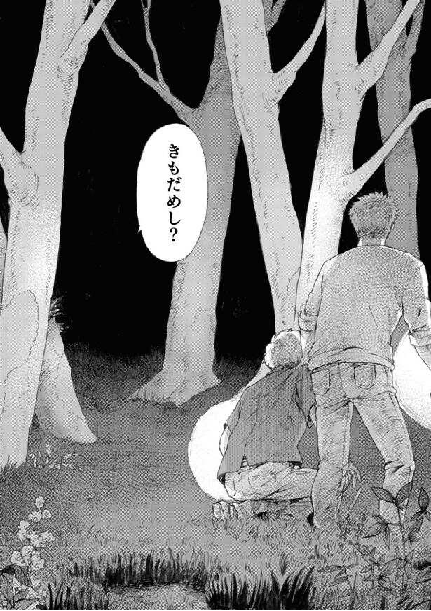前回、「アイスの森」にやってきた男子大学生たちは、地面に無数のアイスの棒が刺さっている現場を目撃した。棒に書かれた文字を読んでいると、暗闇の向こう側から「きもだめし?」と声をかけられて…?
