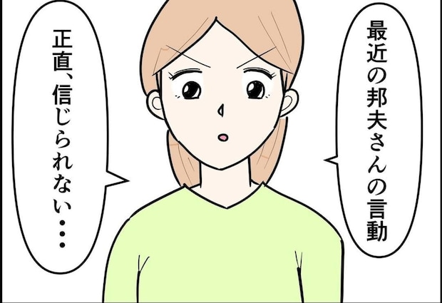 邦夫と同じ課で働く星野に話を聞いたところ、邦夫は新人の女性社員と行動を共にしていることが発覚。一度きちんと邦夫と話し合うことにします。