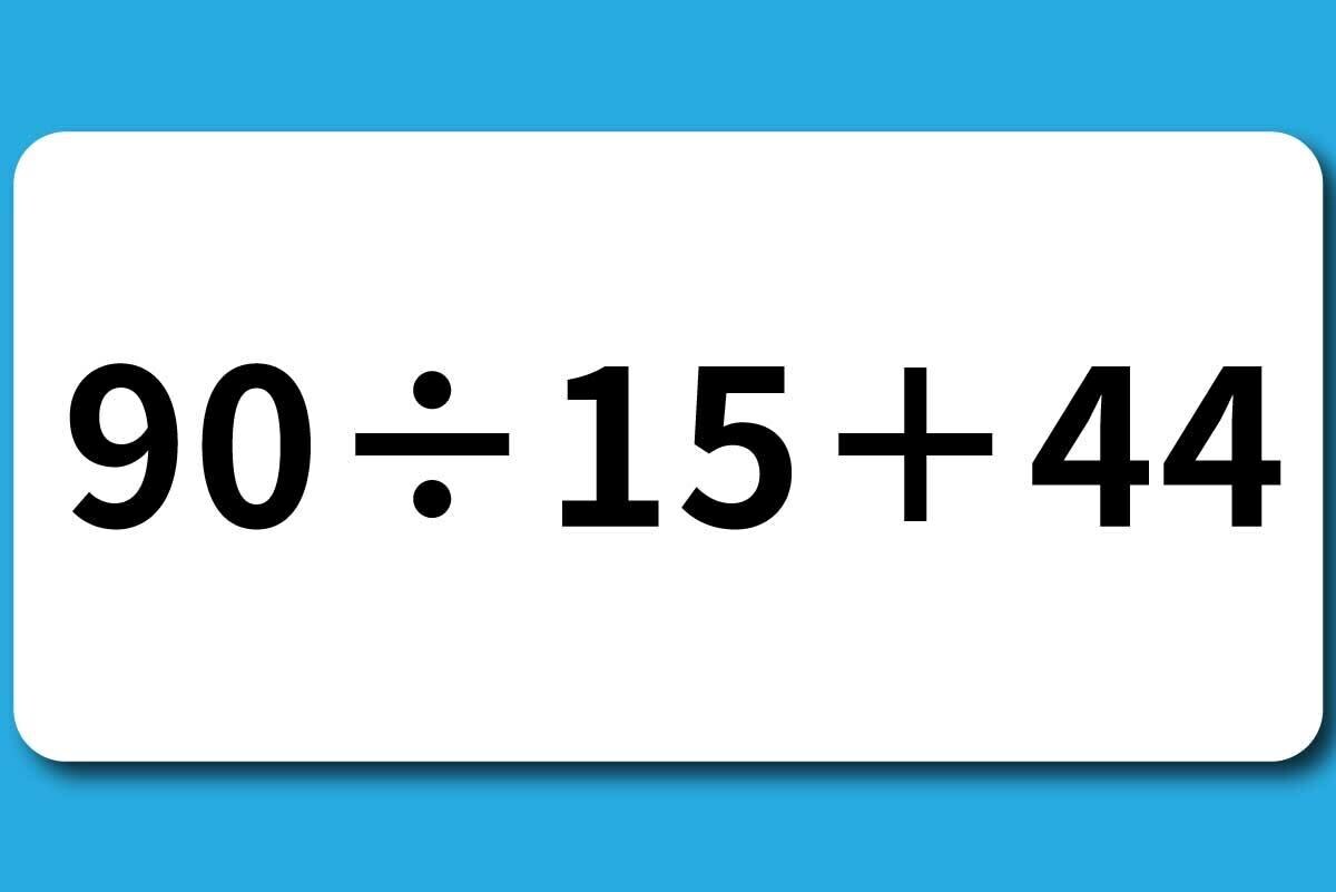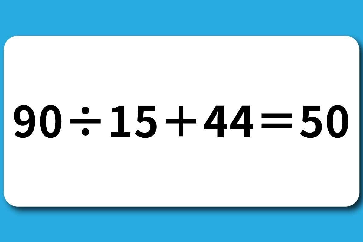 毎日脳トレ、本日は「算数クイズ」です。小学生で習うレベルの式、間違えずに答えを出せますか?【問題】「90÷15+44」はいくつになる?暗算できますか?こたえをみる↓↓↓↓↓↓↓↓↓↓【答】50正解できましたか?