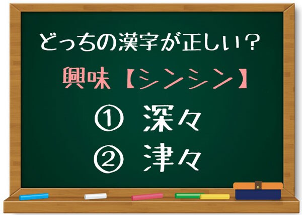 「興味<シンシン>」のシンシンに入る正しい漢字はどっち? よく見る四字熟語ですが、いざどっちと言われると悩みますよね。カタカナ部分の意味を理解できれば、答えは分かるハズ。