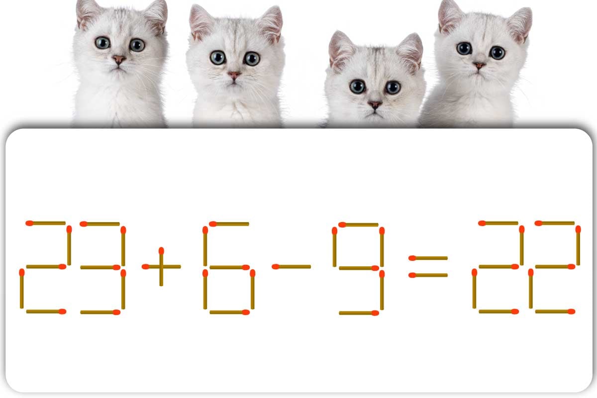 【マッチ棒クイズ】1本だけ動かして「23+6-9=22」の式を正しくしましょう!
