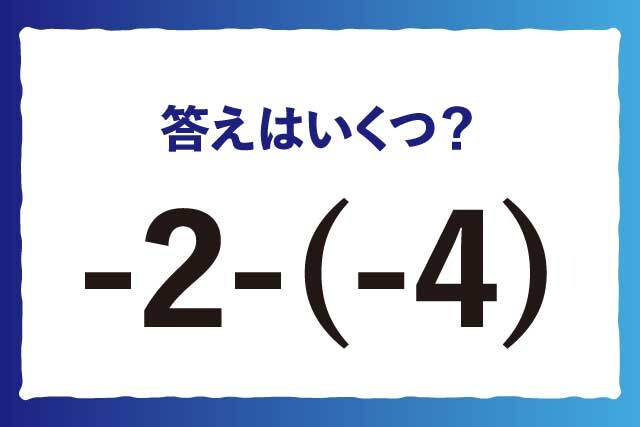 「-2-(-4)」の答えはわかりますか? どう計算するかを思い出せれば、30秒で答えが導き出せるはず! 中学1年生レベルのこの問題。早速挑戦してみましょう!
