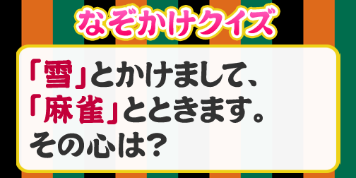 【問題】「雪」とかけまして、「麻雀」とときます。その心は?