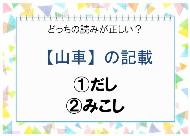ポイントは従来読むべき漢字の音がまったく使われない点。山と車がくっつくと、こんな読み方&意味があるんだ!とびっくりしますよね。どうしてもわからないときは、お祭り好きな人に聞いてみましょう♪