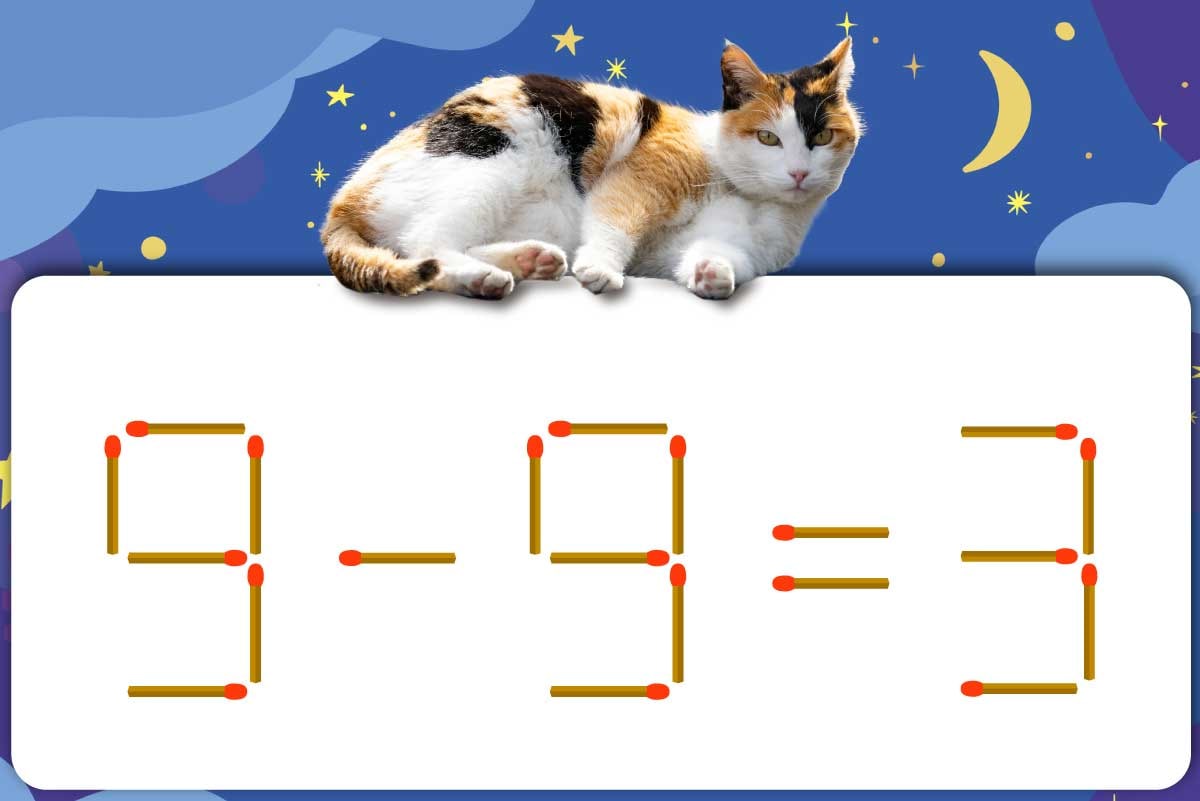 「9」のマッチ棒を1本、もう1つの「9」に移動させて「8」を作り、「8-5=3」にする。※解答は複数ある場合があります。