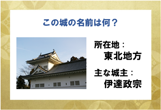 城主は伊達政宗で、東北地方に建てられたこのお城。なんという名前かわかりますか? ヒントは、通称「青葉城」とも呼ばれているあのお城です!