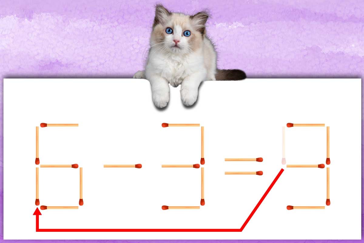 「9」のマッチ棒を1本、「5」に移動させて「6」を作り、「6-3=3」にする。※解答は複数ある場合があります。