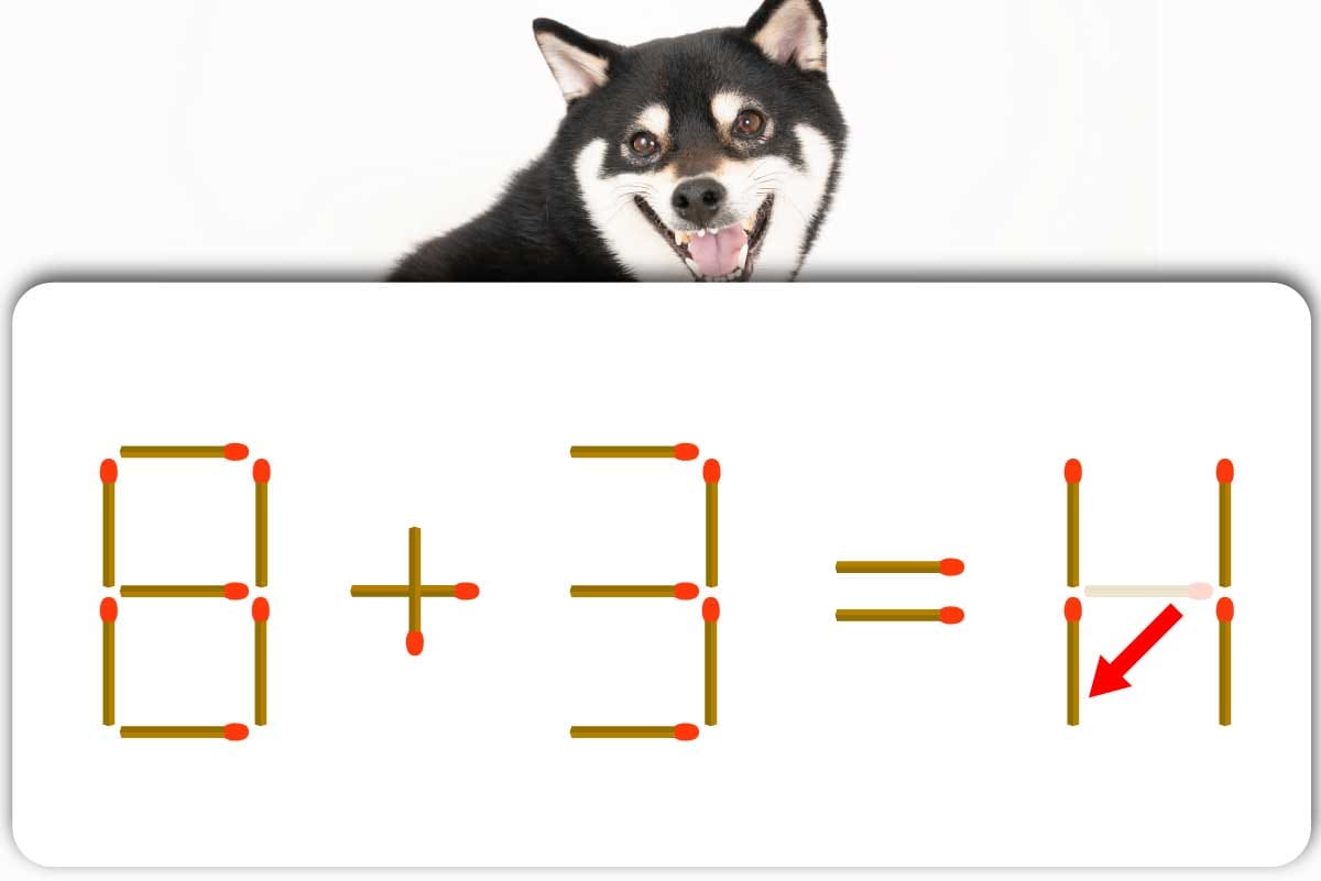 まず「4」から、真ん中に横たわっているマッチ棒を取りましょう。そのまま左下の方向にマッチ棒をくるっと縦にすると……。なんと数字が「11」に大変身!「8+3=11」になることで、みごと式が完成します。