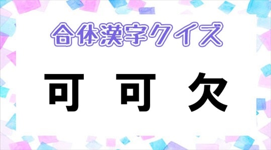 「可 可 欠」この3文字を合体させるとある漢字が完成します。この問題のポイントとなるのが、2つある「可」。この漢字をどこに配置するか、頭の中で移動させて考えてみてください。