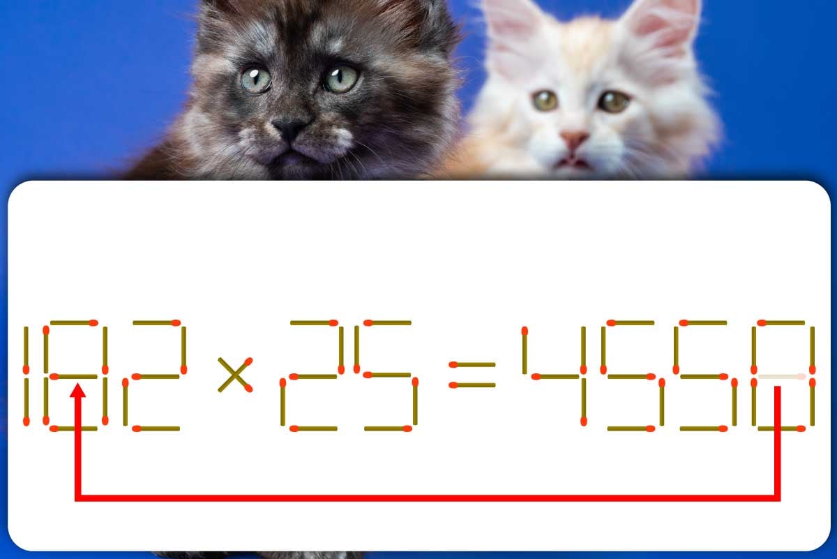 動かすのは「4558」の「8」の真ん中の1本。横向きのまま左にスライドして、「0」の真ん中に持っていきましょう。すると「182×25=4550」となり、正しい式になりました! ※解答は複数ある場合があります。