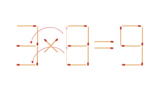 毎日配信の頭をやわらか~くしてくれる脳トレクイズです。今日の問題は、脳トレの定番「マッチ棒クイズ」です!一瞬のヒラメキで、間違っている式を正しい計算式に変えましょう。【問題】「7×8=9」このおかしな式をマッチ棒を2本動かして正しい式にできますか?こたえをみる【答】8の横棒2本を動かすと…「3×3=9」となり、正しい式になりました!