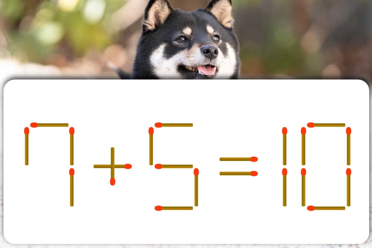 この問題、まずは答えの「10」を見てみましょう。マッチを取っても数字として成立しませんし、マッチを動かしても、式の答えにはなりません。また、「7」や「5」からマッチ棒を取ってしまっても、これまた数字が成立しません。どうにかして数字からマッチを取らないまま、答えとの差である「2」を埋めたいところです。