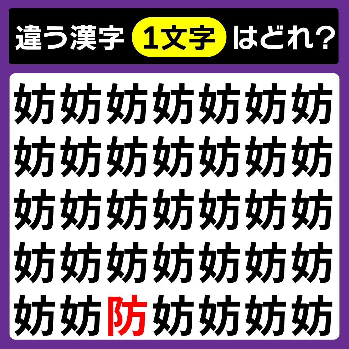 継続して行うことで、どんどん脳が鍛えられる♪ 毎日脳トレ、本日のクイズは、違う漢字を1つ見つけ出す「間違い探し」です。よ~く探してください!