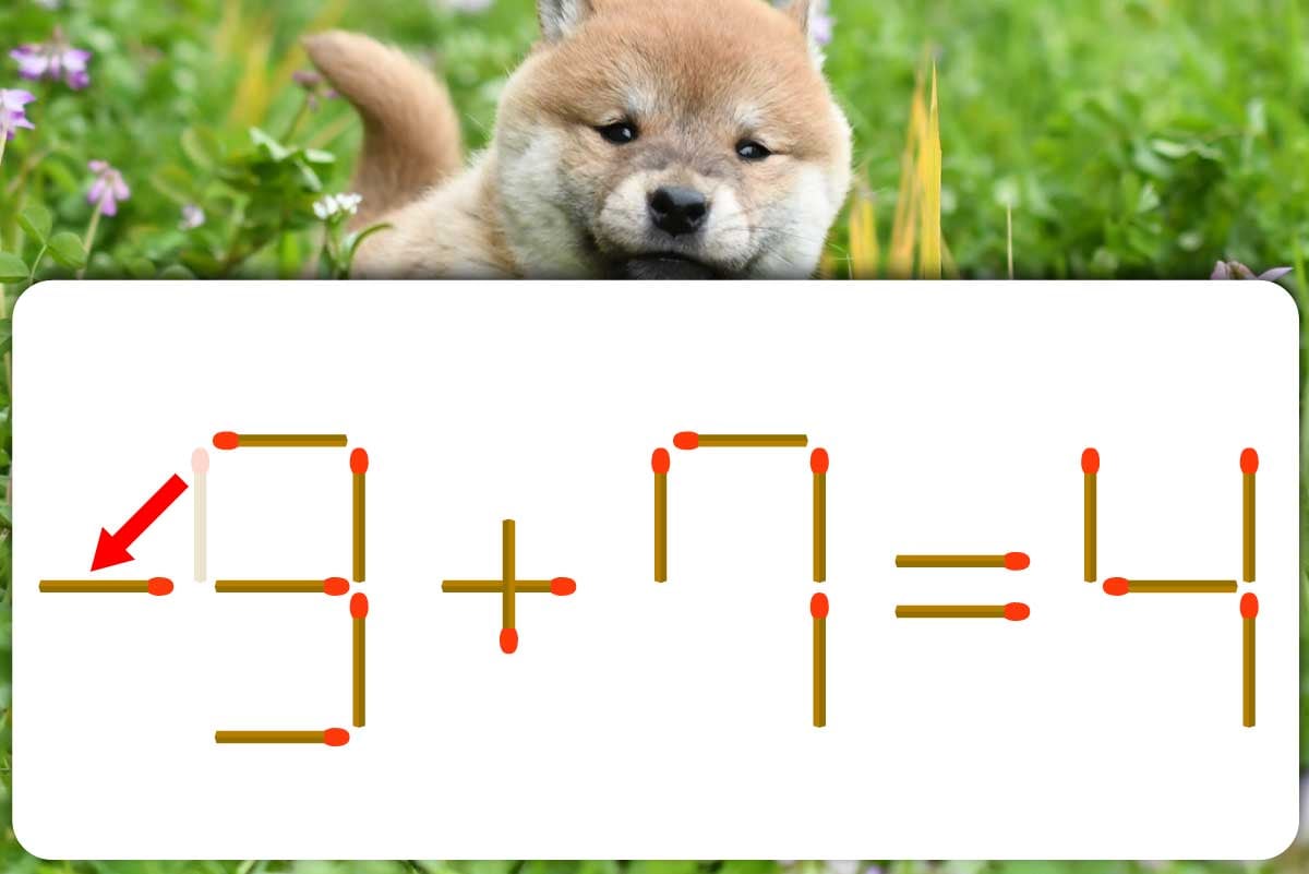 まず、注目してほしいのは左の「9」。ここから左上にある縦のマッチ棒を引き抜き、数字を「3」にしましょう。取ったマッチ棒を横に倒し、「3」の左にくっつけると、「-3」になります♪「3」を負の数にすることで「-3+7=4」と数が調整できるため、正しい計算式に変化しました。