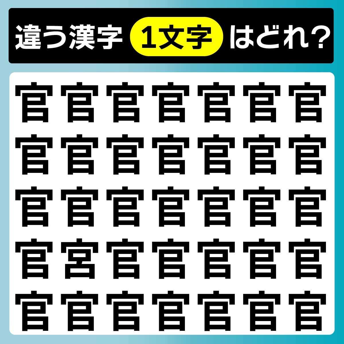 毎日脳トレ、今回のクイズは同じ漢字の中に紛れ込んだ、異なる1文字を見つけ出す「間違い探し」です。さあ、見つけてみましょう。