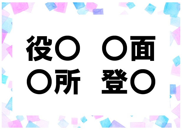 【答】 場それぞれ「役場」「場面」「場所」「登場」となります。