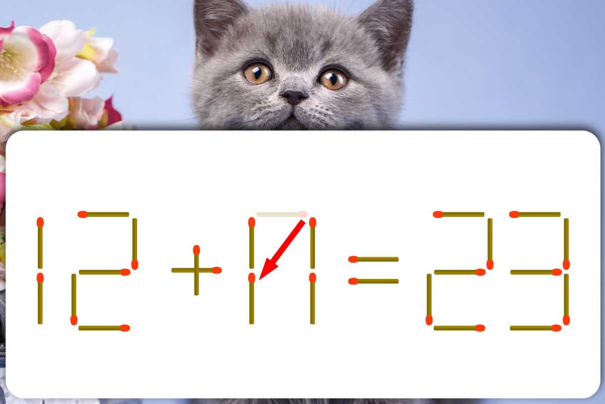 「7」のマッチ棒を1本移動させて「11」を作り、「12+11=23」にする。※解答は複数ある場合があります。