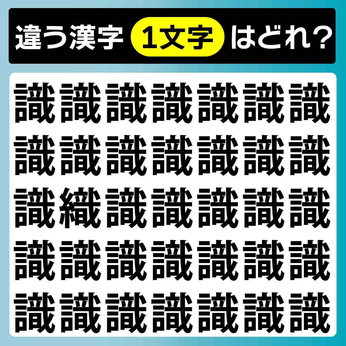 毎日脳トレのコーナーです。本日は漢字間違い探しに挑戦! この中にひとつだけ違う漢字があります。あなたは何秒で見つけられるかな?