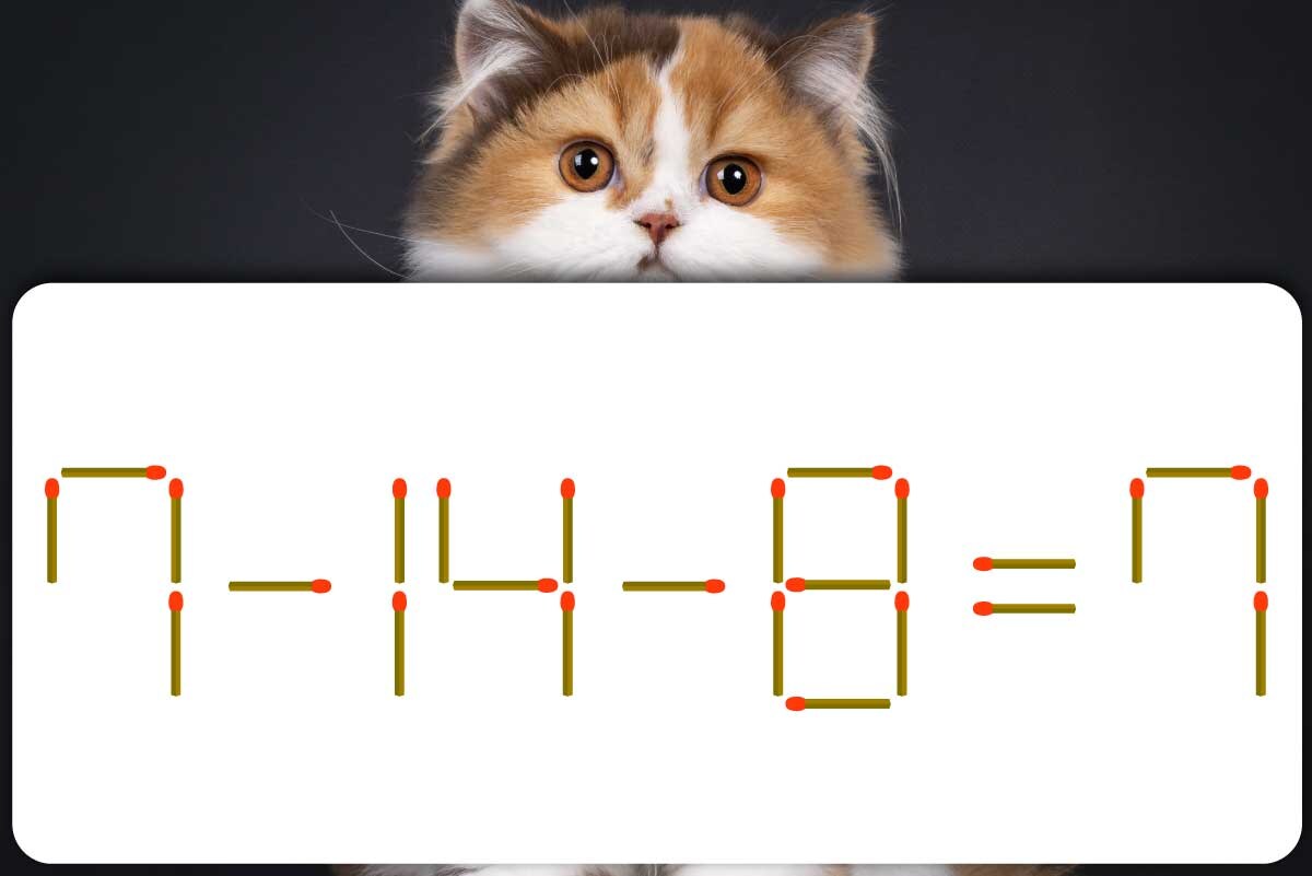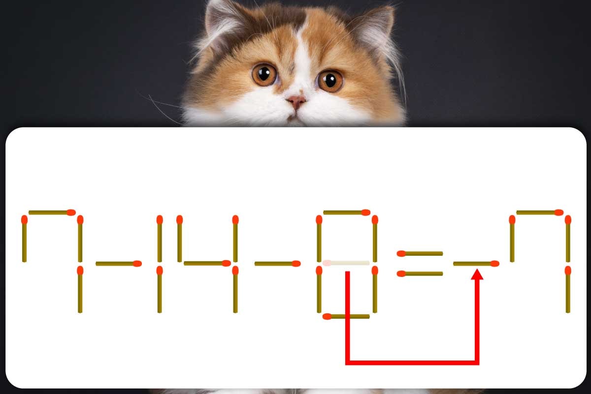 「8」のマッチ棒を1本、「=」の後ろに移動させて「-」を作り「7-14-0=-7」にする。※解答は複数ある場合があります。