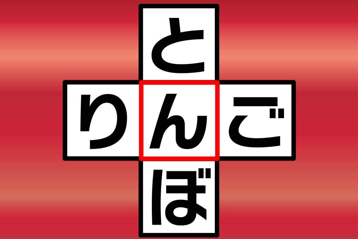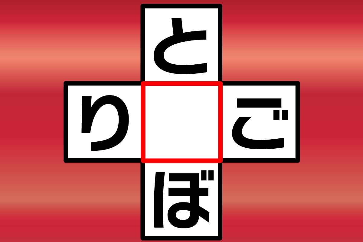 【問題】空欄に入るひらがなは? 【ヒント】タテ:長い羽根と複眼が特徴の昆虫です。4月~11月ごろまでさまざまな種類がいます。ヨコ:バラ科の果物です。旬は種類によって8月~3月までです。
