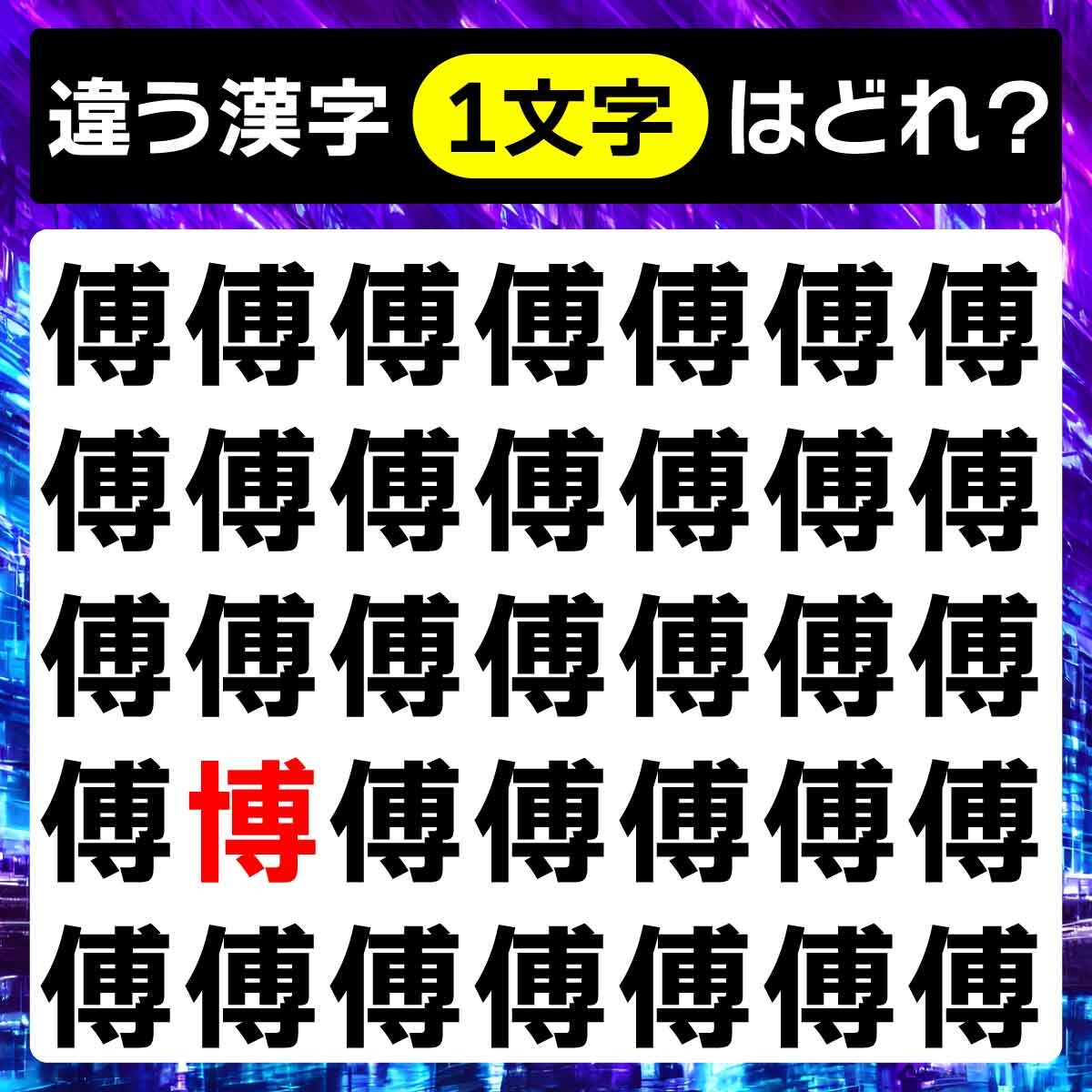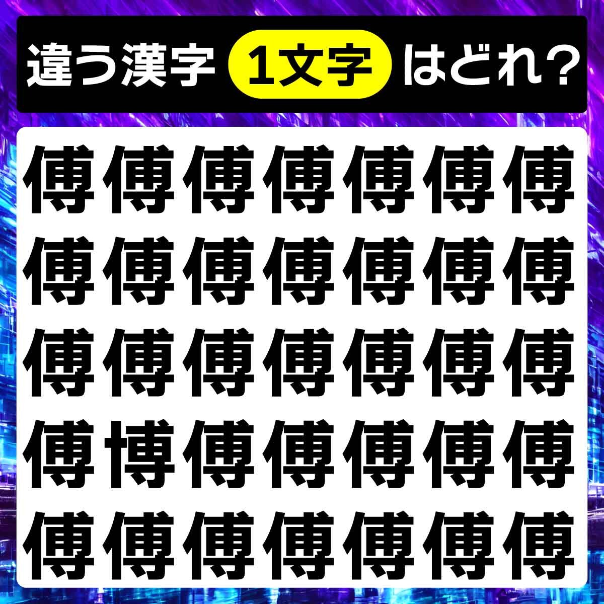 違う漢字は、下から2列目、左から2番目の文字でした!