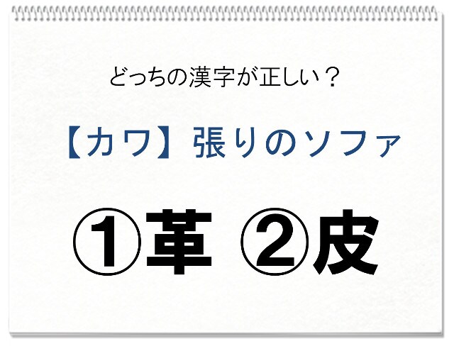 正解がすぐにわかれば簡単なのですが、この問題は漢字のつくりから意味を想像するのはちょっと無理かも。「革」と「皮」の違いに気づくとすぐにひらめきます。それぞれの文字がどんなところで使われているか考えてみましょう。