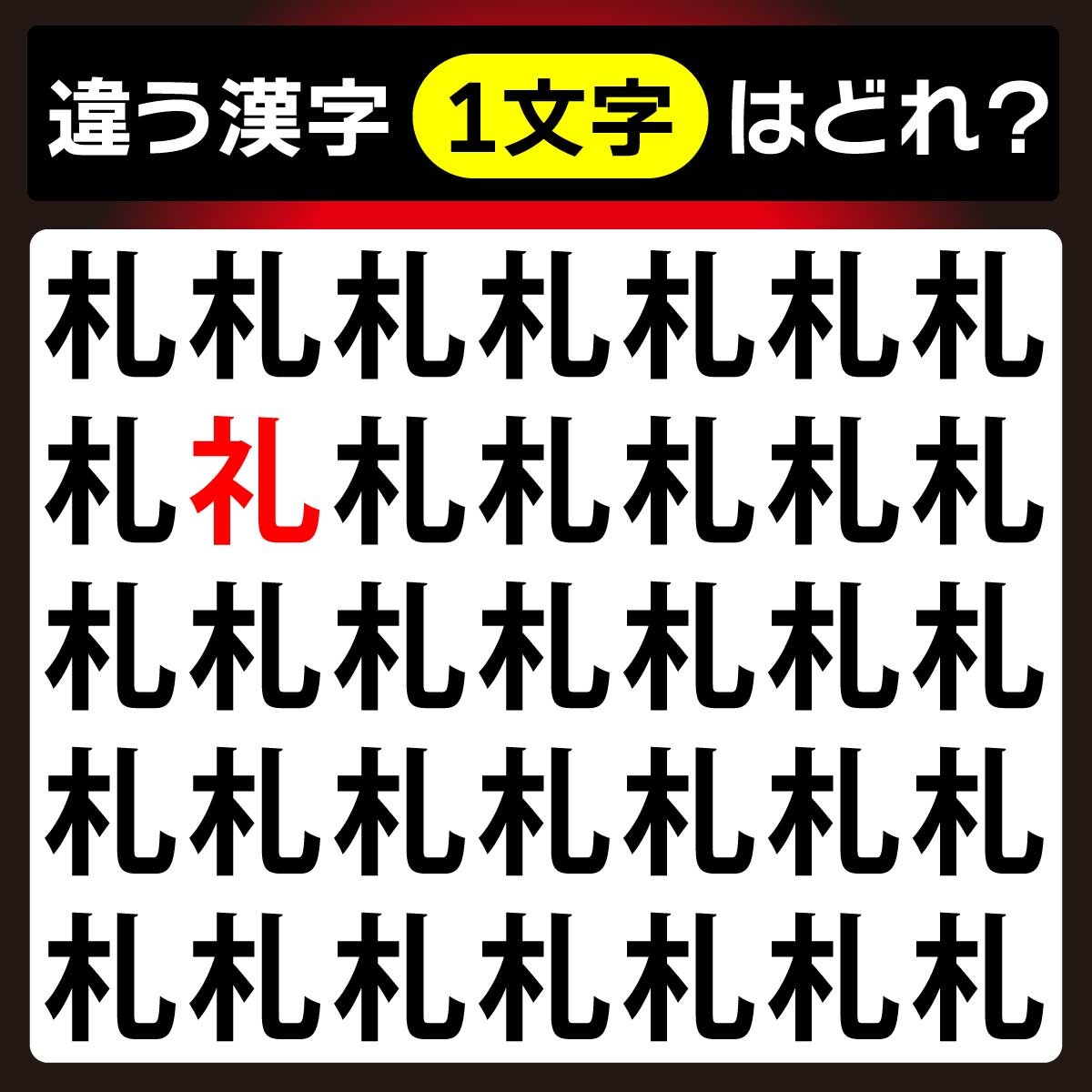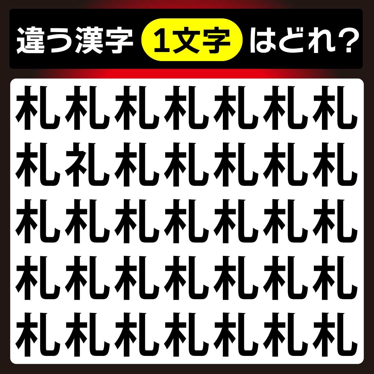 違う漢字は、上から2列目、左から2番目の文字。