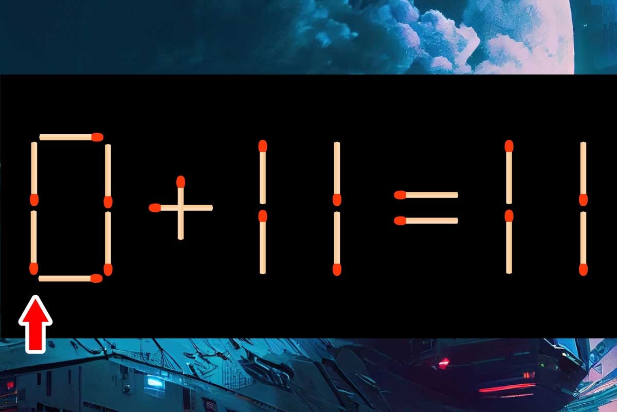 「9」の横マッチ棒を1本、移動させて「0」を作る。
