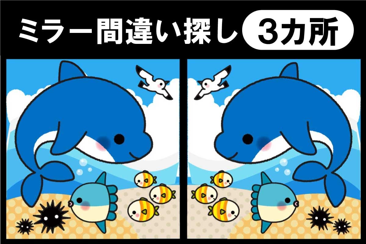ミラーになっている2枚のイラストに、3カ所の違いがあります。よ~く探してみてください♪