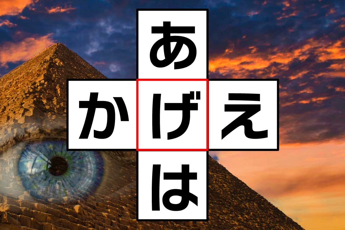 【問題】空欄に入るひらがなは? 【ヒント】タテ:チョウの一種。漢字では「揚羽」と書く。 ヨコ:紙や木で作られた人形や、動物などに見立てた手などの後方から光を当てて、その影をスクリーンに投影したもの。