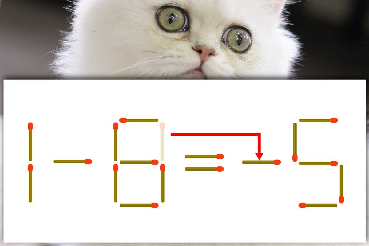 「8」のマッチ棒を1本「=」の後ろに移動させて「-」を作り、「1-6=-5」にする。※解答は複数ある場合があります。