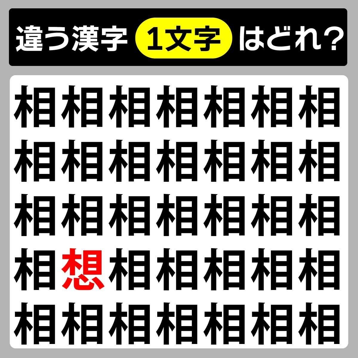 脳トレの継続で、頭をやわらか~く♪ 「毎日脳トレ」のコーナー。本日のクイズは「間違い探し」です! 異なる漢字を見つけてください。