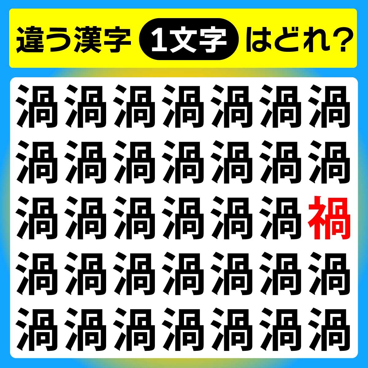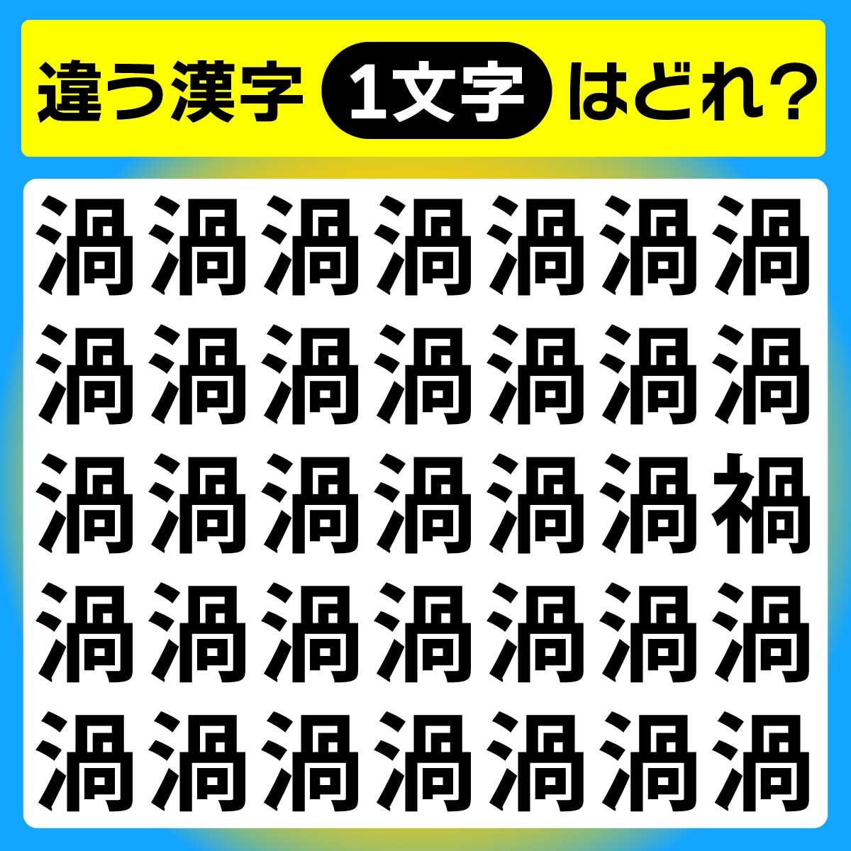 毎日配信中「毎日脳トレ」の時間です! 本日のクイズは「漢字のまちがい探し」に挑戦♪ 同じ漢字が並んでいるように見えますが、実は1つだけ違う漢字が……。よ~く探してみてください!