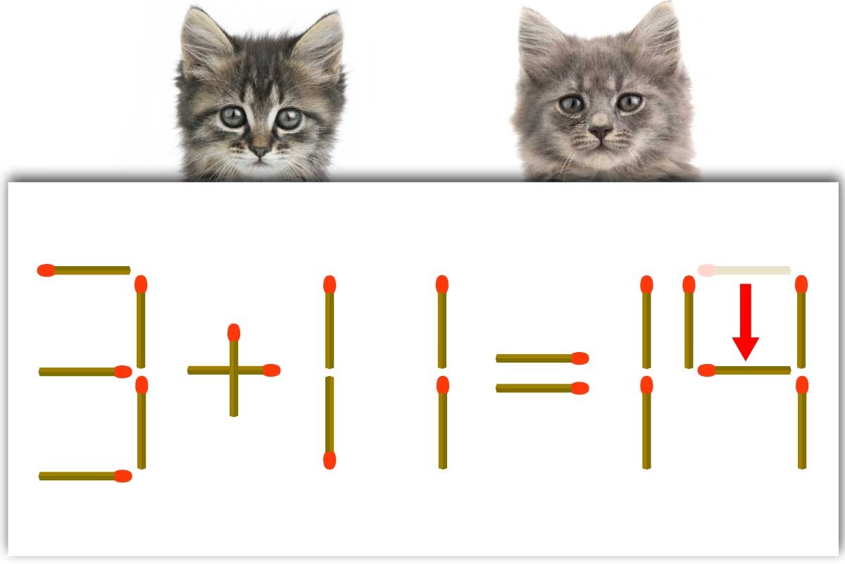 【問題】マッチ棒を1本動かして式を正しくしてください。