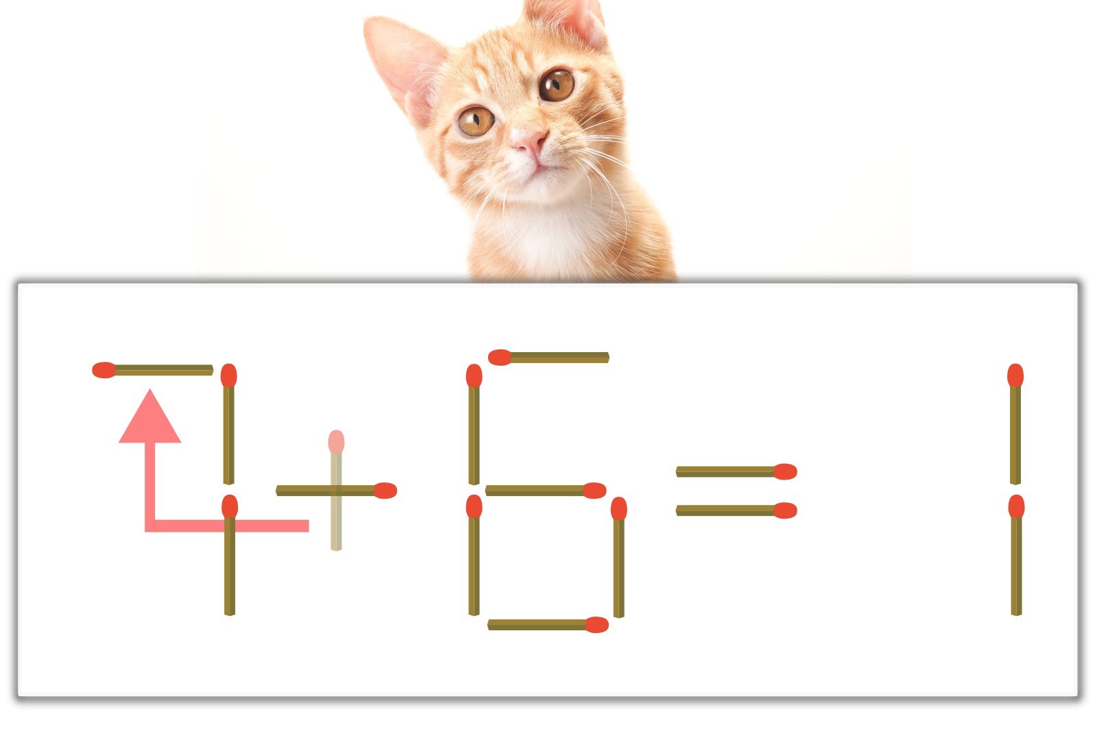 「+」のマッチ棒を1本、左にスライドさせて「7」を作り、「7-6=1」にする。※解答は複数ある場合があります。