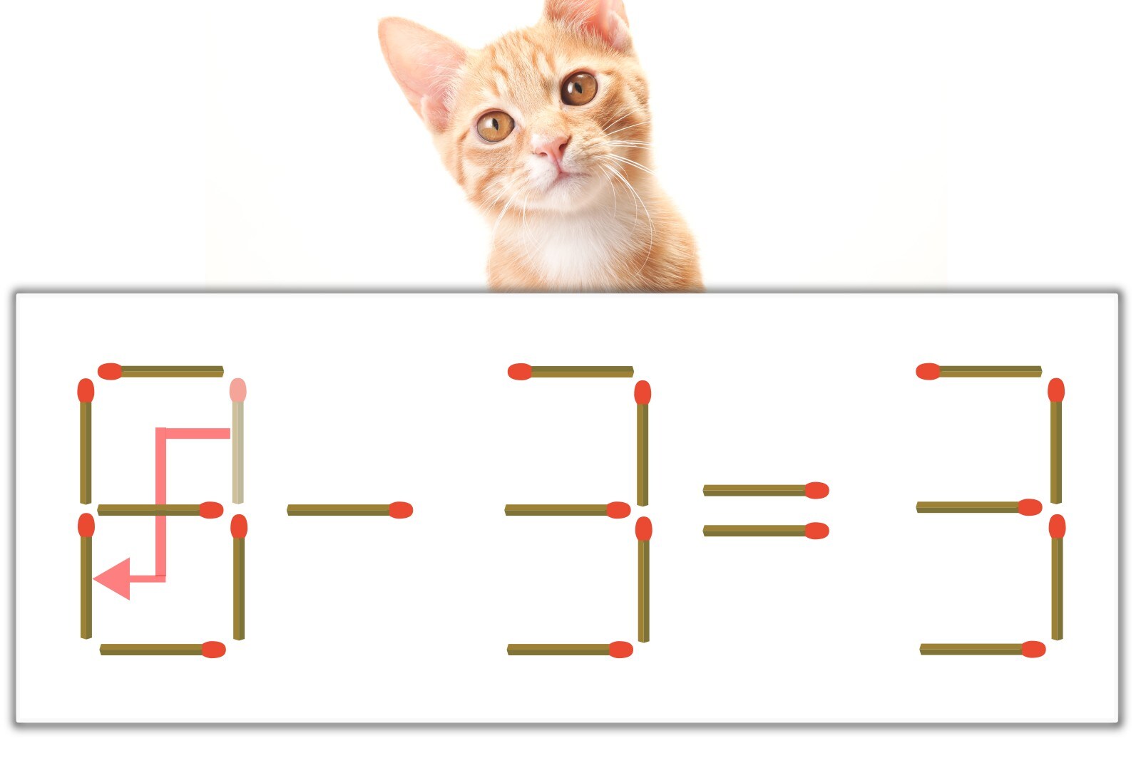 【問題】マッチ棒を1本動かして式を正しくしてください。