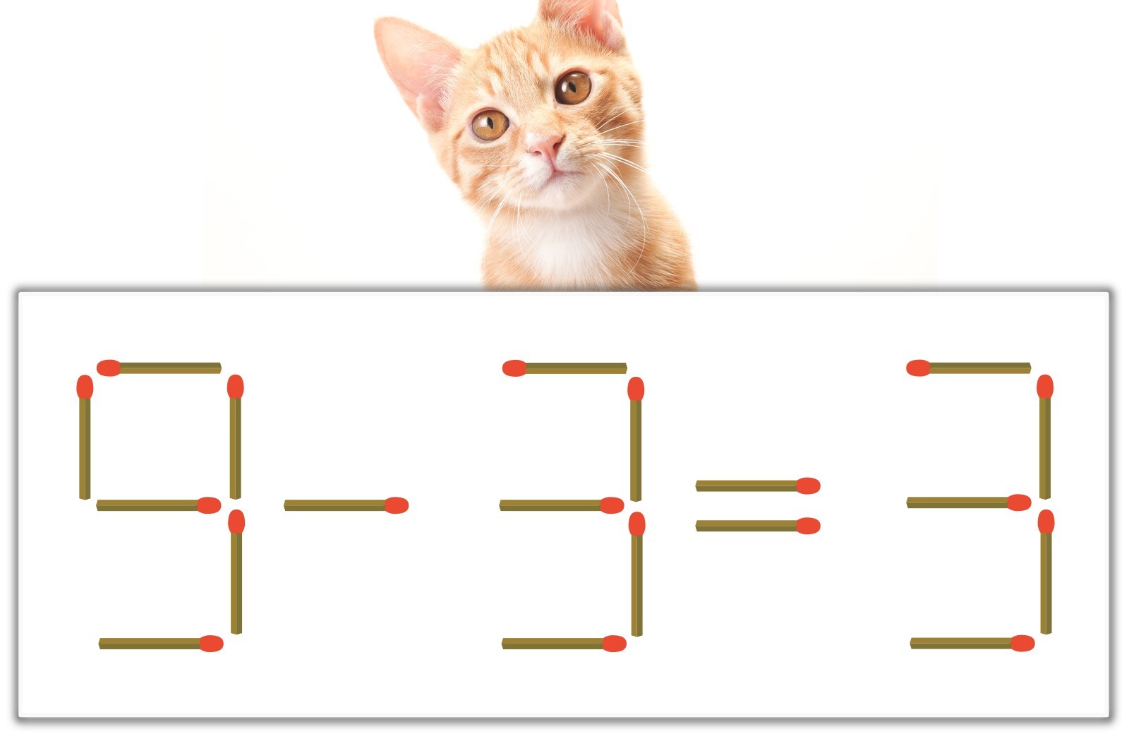 「9」のマッチ棒を1本、左下にスライドさせて「6」を作り、「6-3=3」にする。※解答は複数ある場合があります。