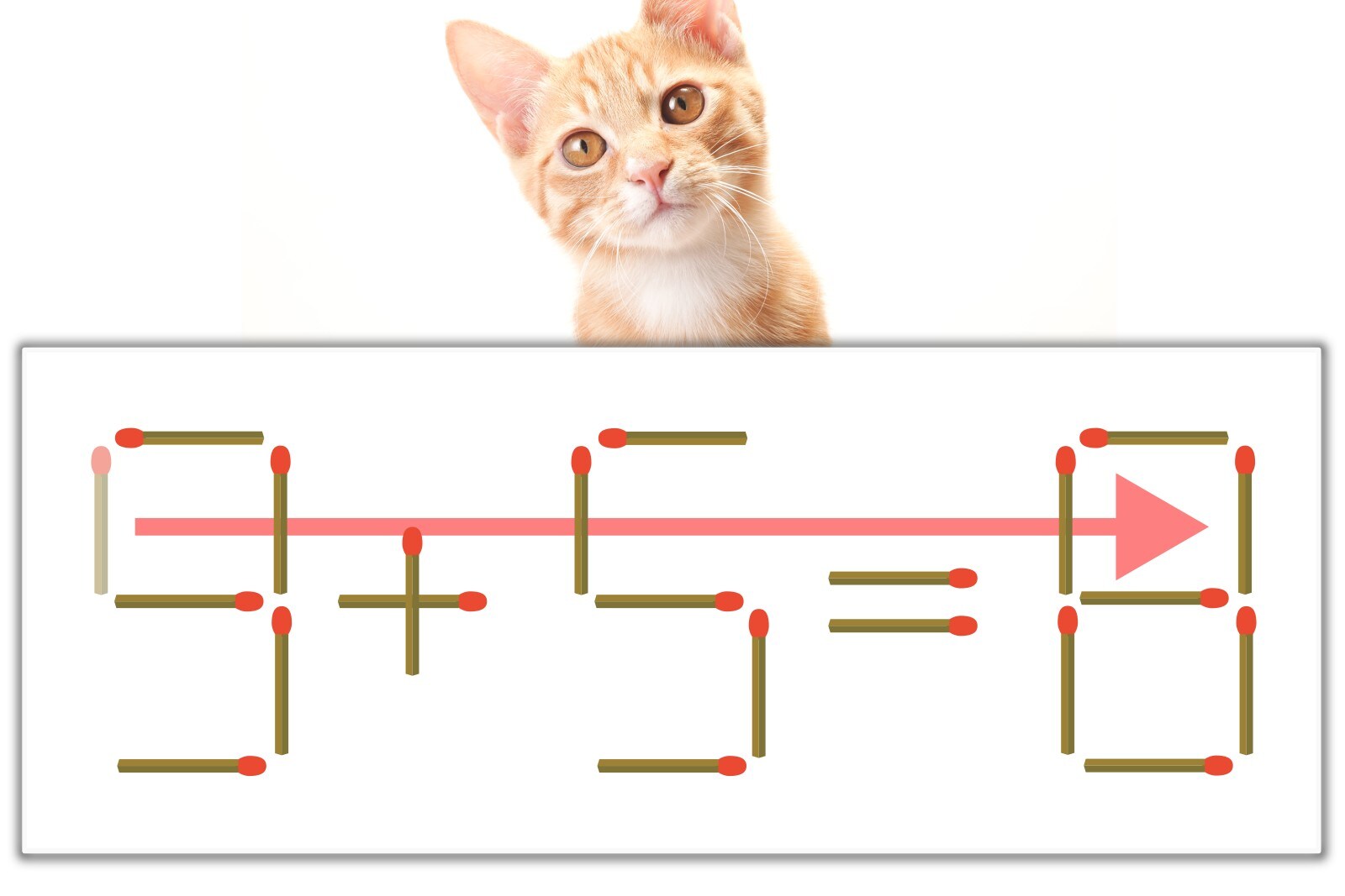 【問題】マッチ棒を1本動かして式を正しくしてください。