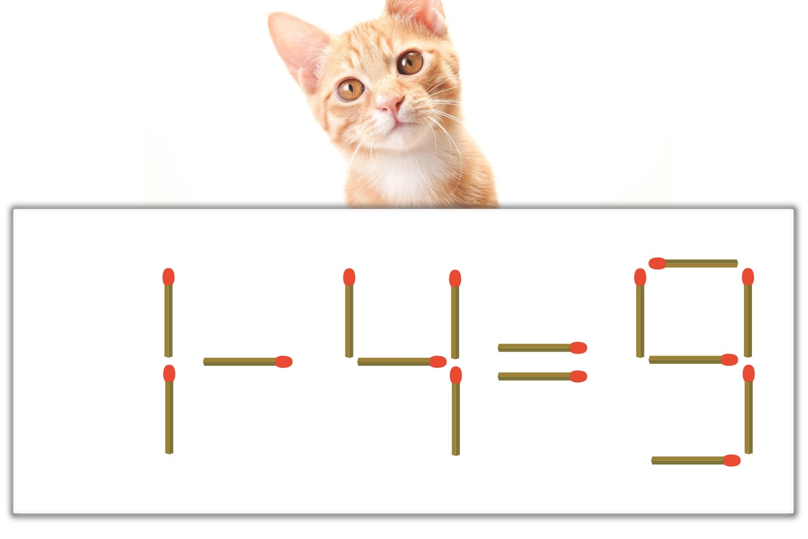 「9」のマッチ棒を1本、左にスライドさせて「+」を作り、「1+4=5」にする。※解答は複数ある場合があります。