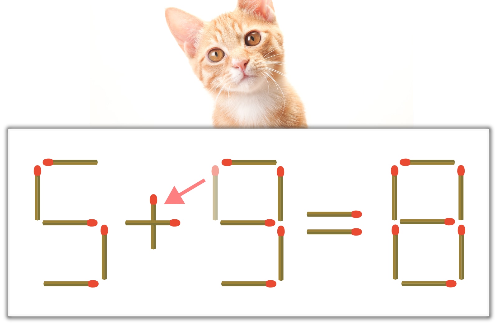 【問題】マッチ棒を1本動かして式を正しくしてください。