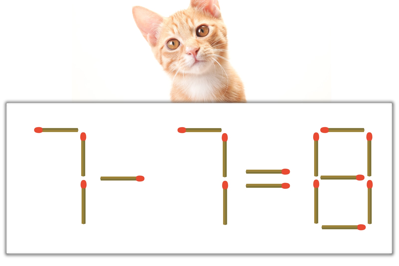 「7」のマッチ棒を1本、右にスライドさせて「+」を作り、「1+7=8」にする。※解答は複数ある場合があります。
