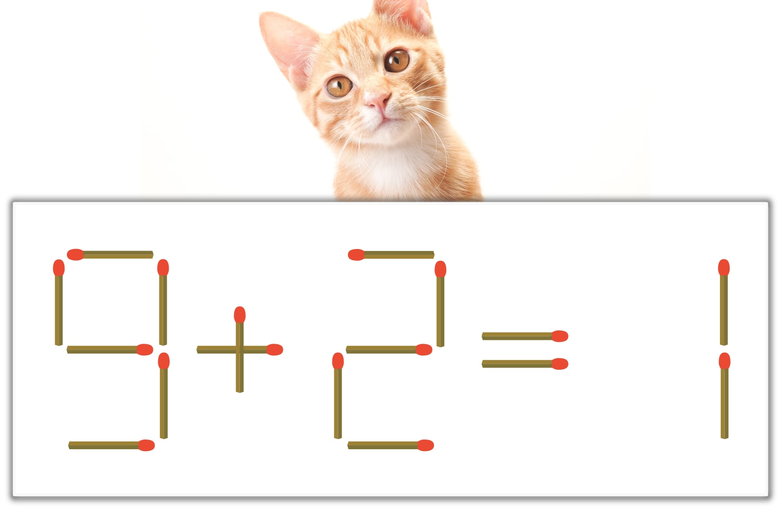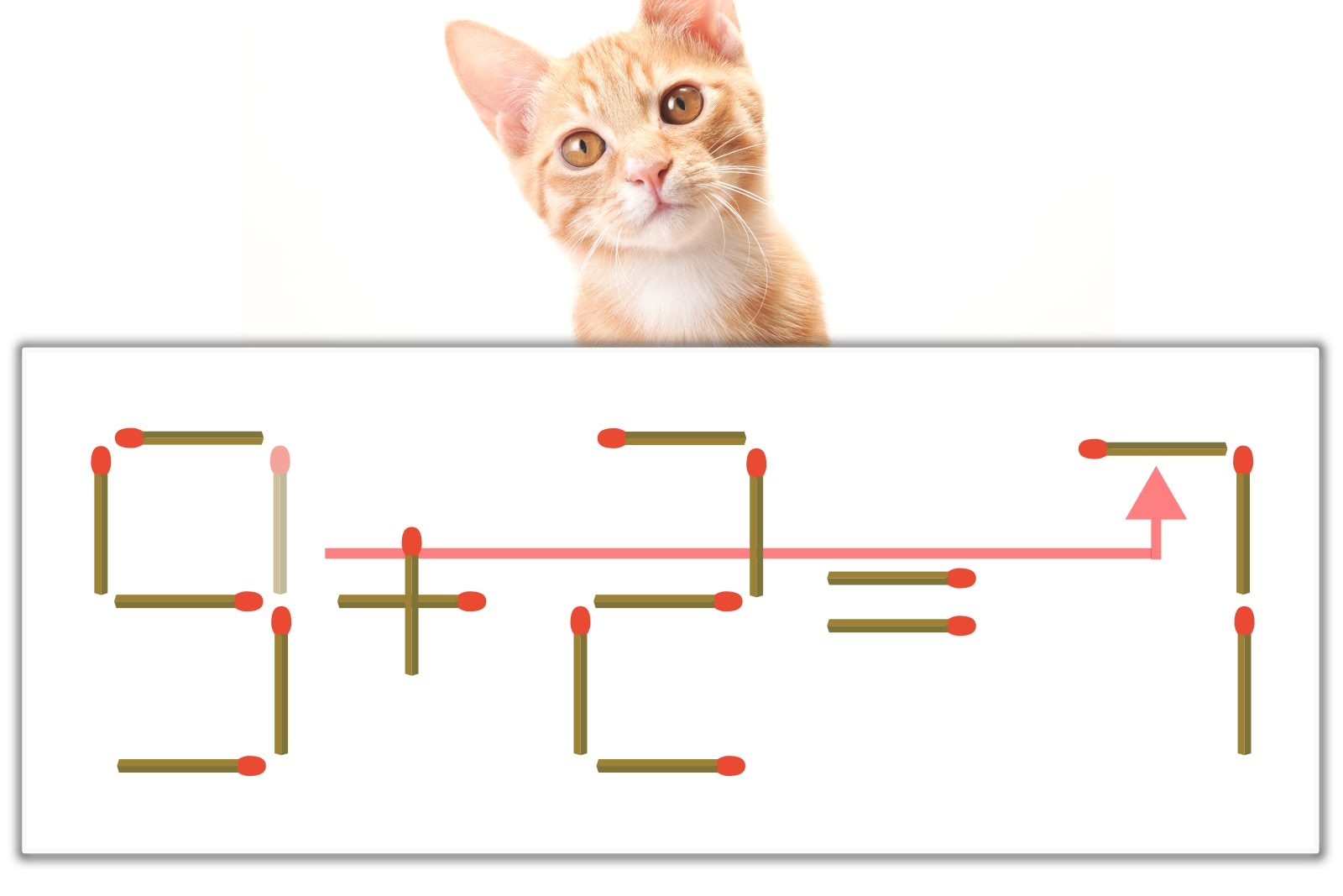 【問題】マッチ棒を1本動かして式を正しくしてください。