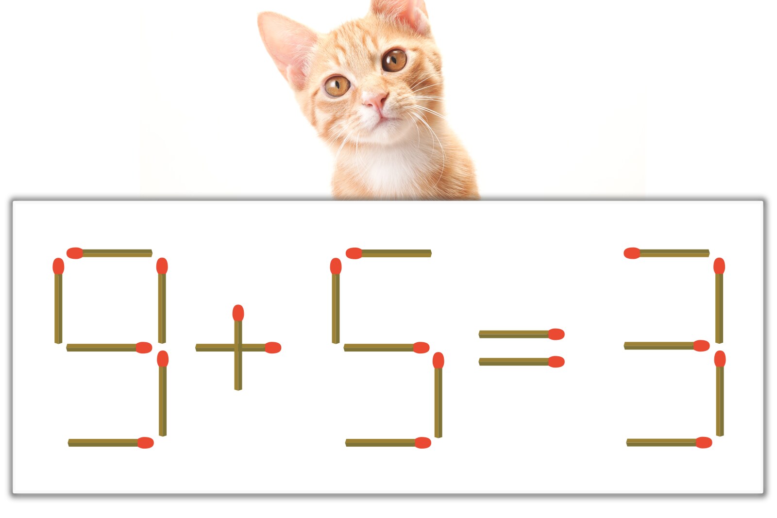 【問題】マッチ棒を1本動かして式を正しくしてください。