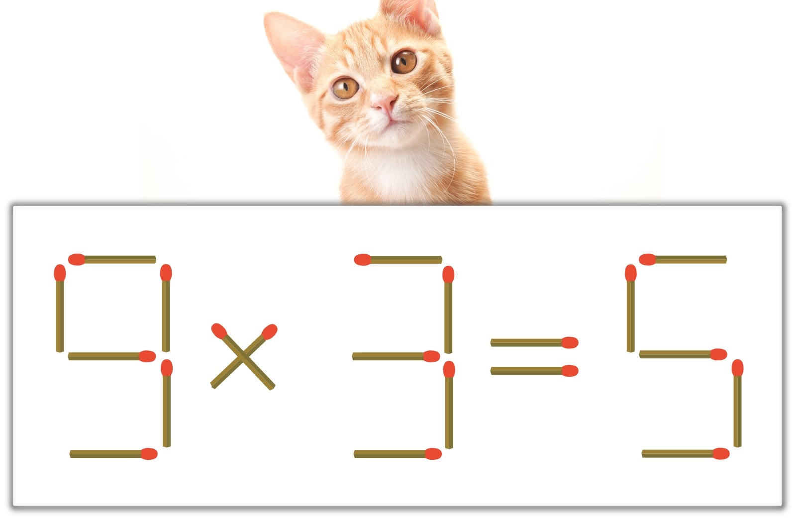 「9」のマッチ棒を1本、右にスライドさせて「9」を作り、「3×3=9」にする。※解答は複数ある場合があります。