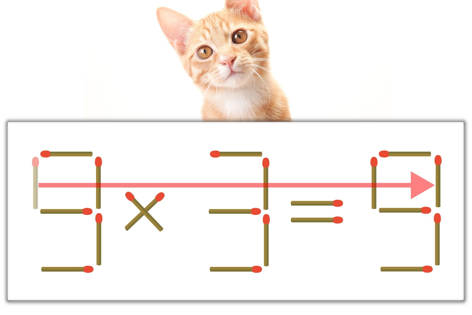 【問題】マッチ棒を1本動かして式を正しくしてください。
