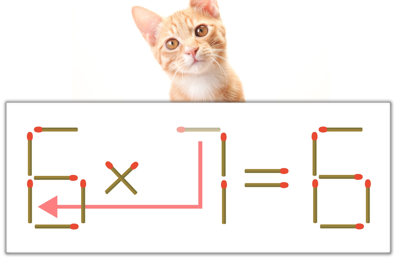 「7」のマッチ棒を1本、左にスライドさせて「6」を作り、「6×1=6」にする。※解答は複数ある場合があります。
