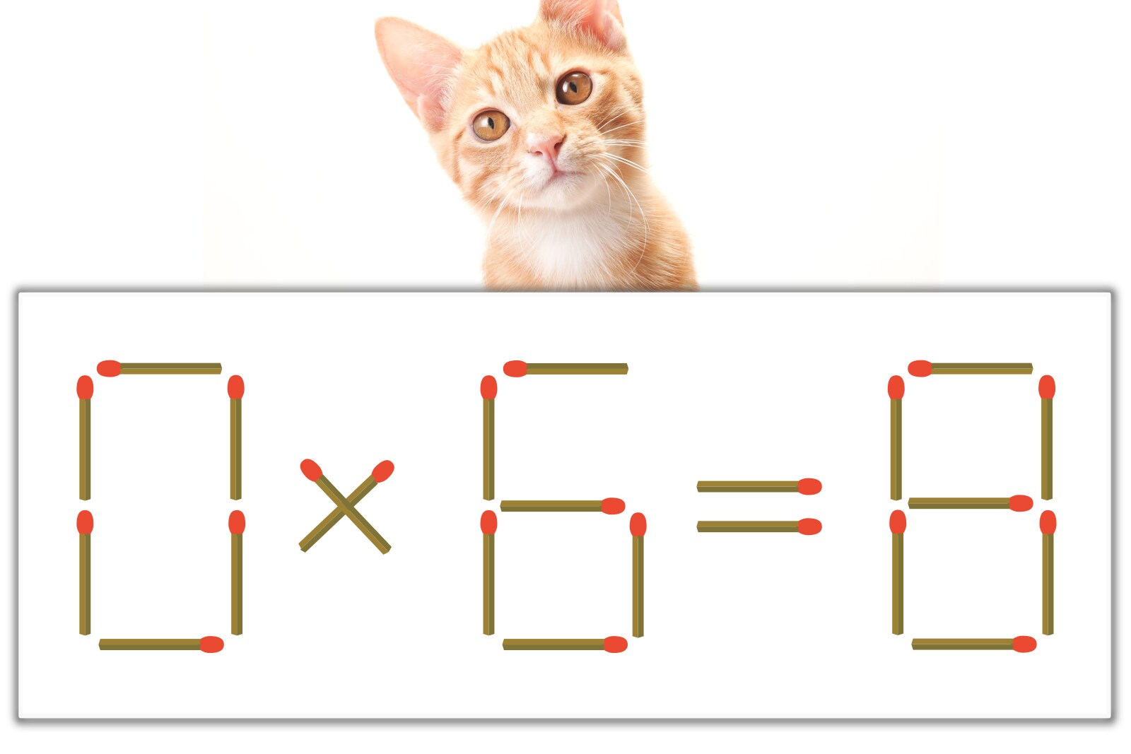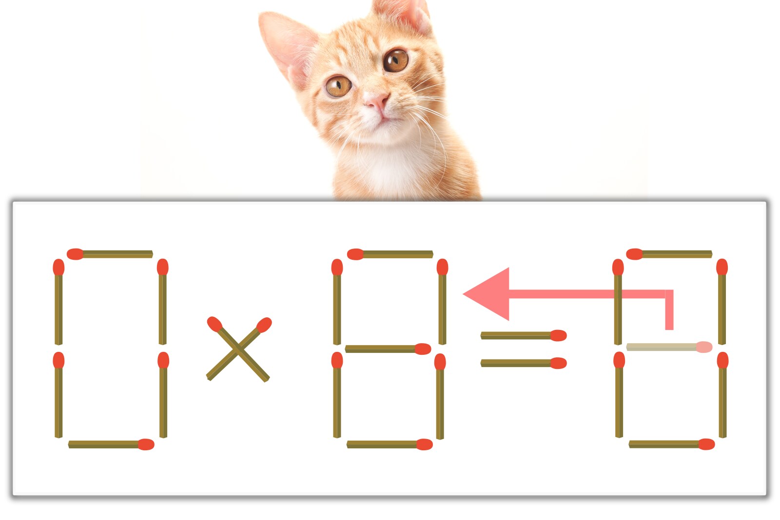 「8」のマッチ棒を1本、左にスライドさせて「8」を作り、「0×8=0」にする。※解答は複数ある場合があります。
