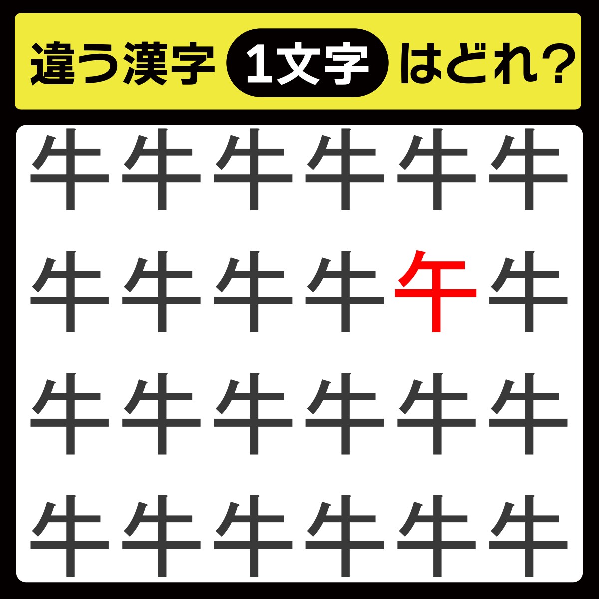 毎日配信中「毎日脳トレ」の時間です! 本日のクイズは「漢字のまちがい探し」に挑戦♪ 同じ漢字が並んでいるように見えますが、実は1つだけ違う漢字が……。よ~く探してみてください!
