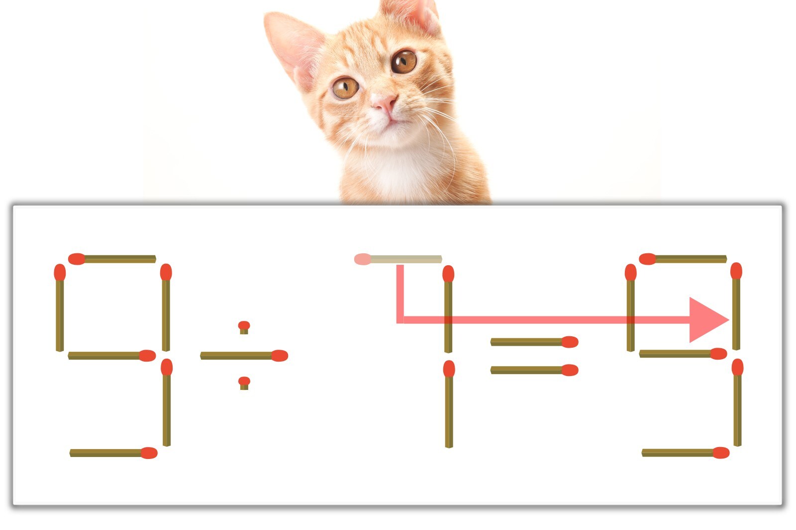 「7」のマッチ棒を1本、右にスライドさせて「9」を作り、「9÷1=9」にする。※解答は複数ある場合があります。